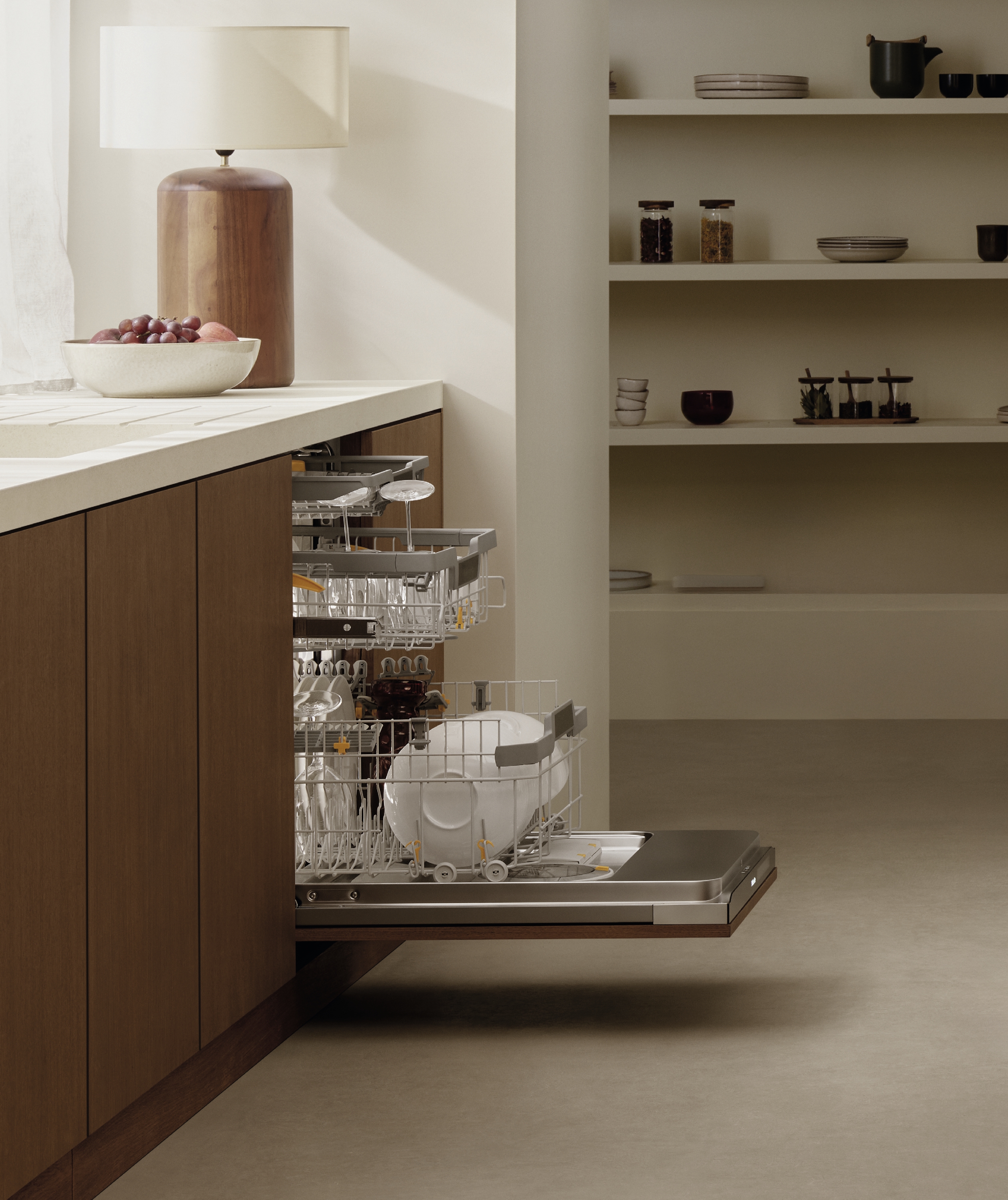 Von Weingläsern mit langem Stiel bis zum Geschirr für jeden Tag – für optimale Sauberkeit bleibt im Miele Geschirrspüler alles sicher an seinem Platz. Lernen Sie die automatische Spülmitteldosierung AutoDos mit PowerDisk* kennen für hervorragende Reinigungsergebnisse und stets die optimale Menge an Spülmittel.